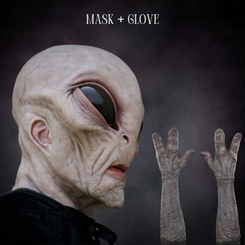 Recovered from the depths of Area 51, this hyper-realistic alien mask mirrors every unsettling trait seen in alleged encounters — from obsidian-black eyes to strange, sinewy textures. So lifelike… it feels real. But then again — who said it isn’t?