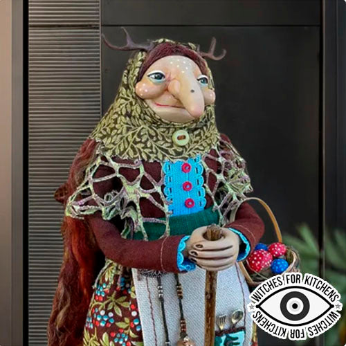 A unique kitchen witch doll, custom made to bring protection, luck, and love to your witchy home.